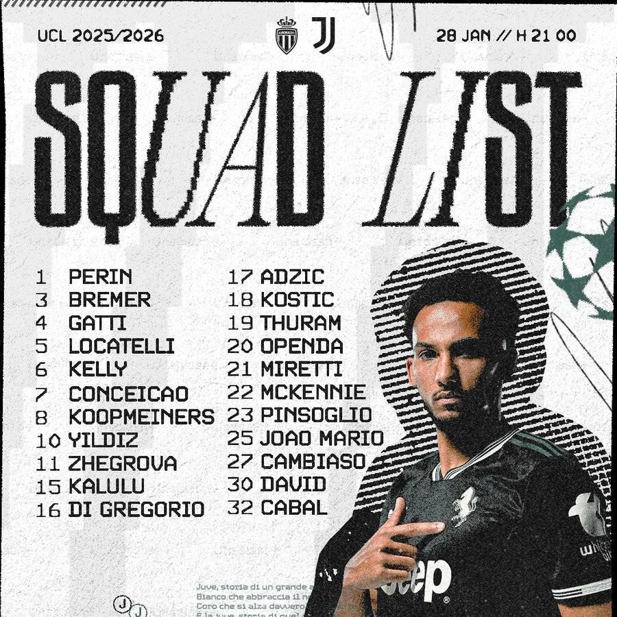 开云官网-尤文欧冠末轮客战摩纳哥大名单:伊尔迪兹领衔,戴维在列
